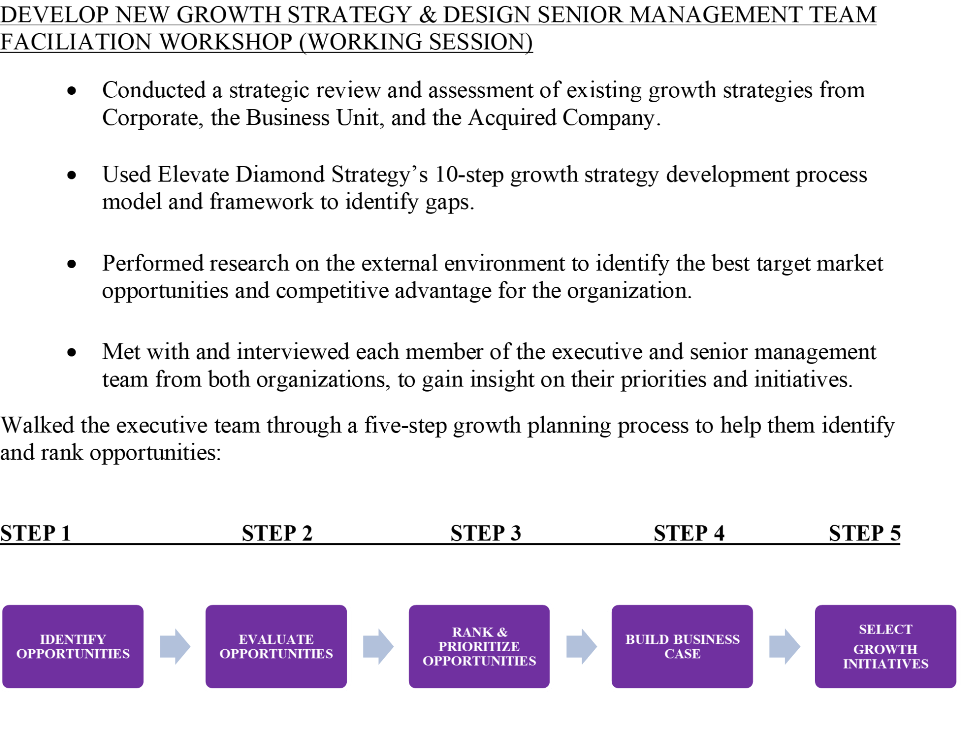 CASE STUDY #11 - SENIOR MANAGEMENT TEAM FACILIATION-STRATEGIC GROWTH INITIATIVES-STRATEGY EXECUTION (MIDDLE MARKET COMPANY)